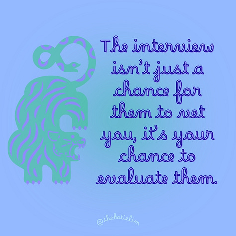 The interview isn’t just a chance for them to vet you, it’s your chance to evaluate them. But skip the cliché “What’s the culture like?”