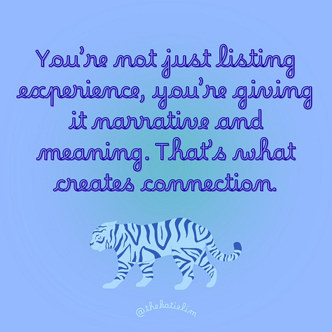 You’re not just listing experience, you’re giving it narrative and meaning. That’s what creates connection.